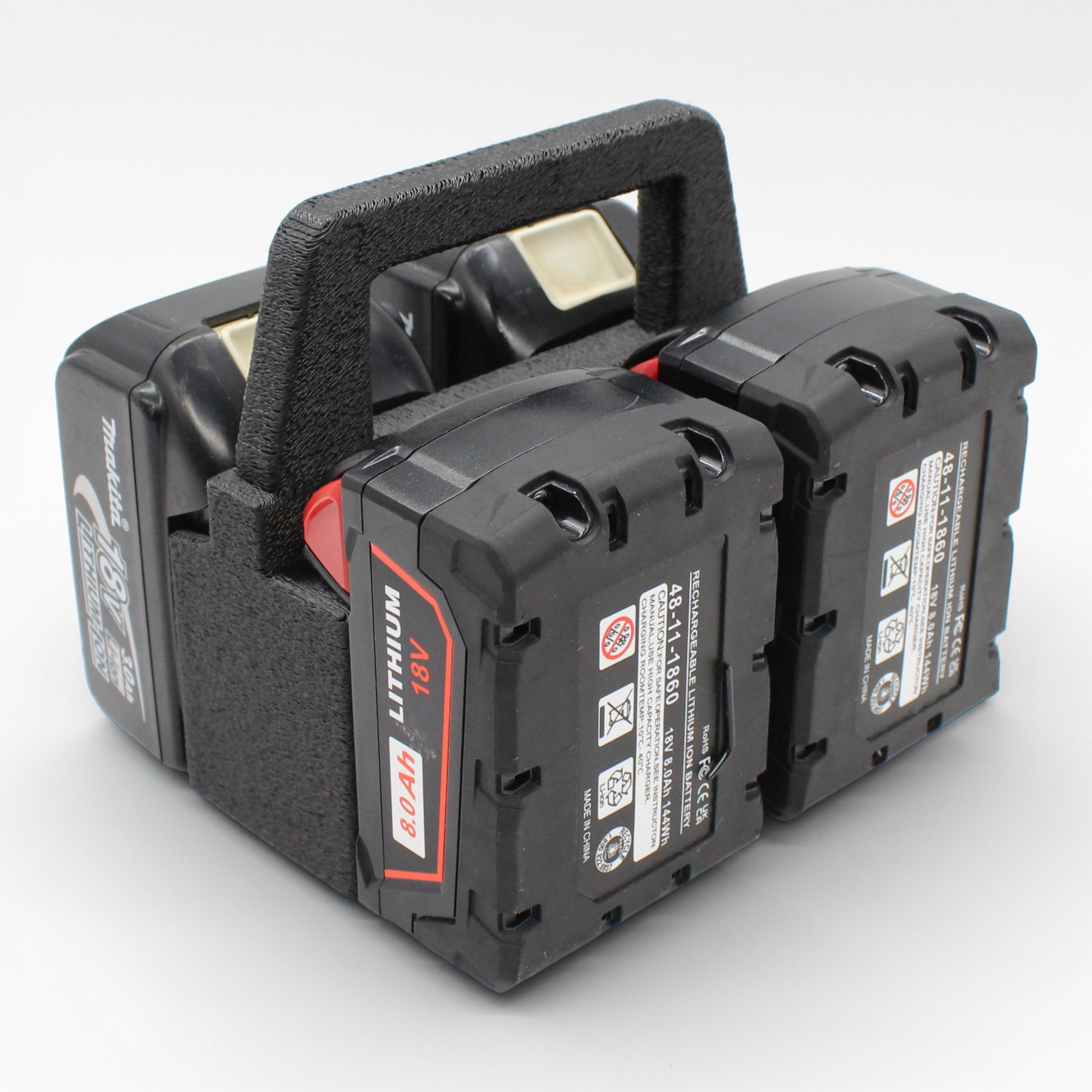 This listing is for a 4 Slot Battery Caddy Carrying Holder compatible with Milwaukee M18 and Makita 18V LXT slide-style batteries.