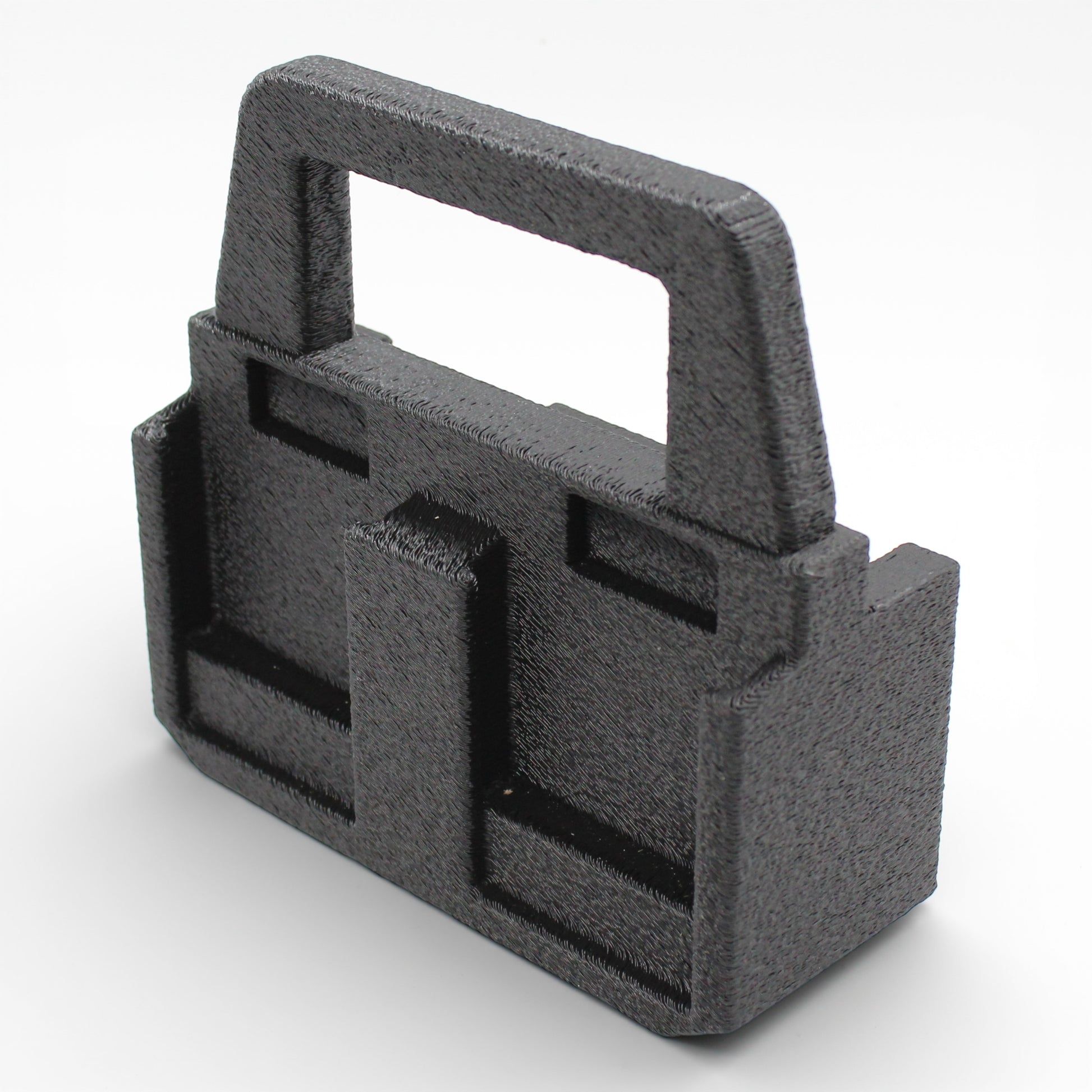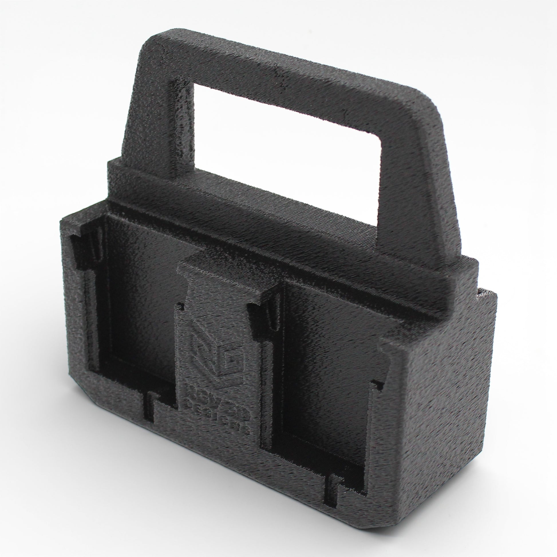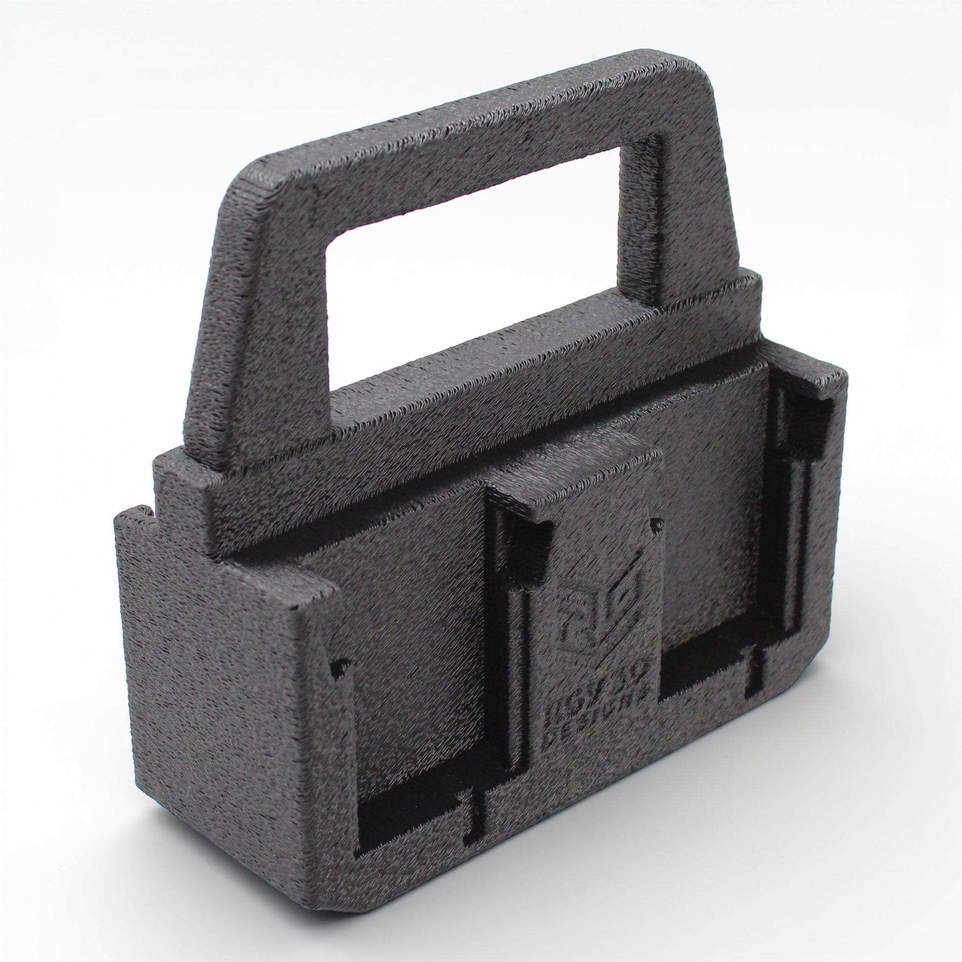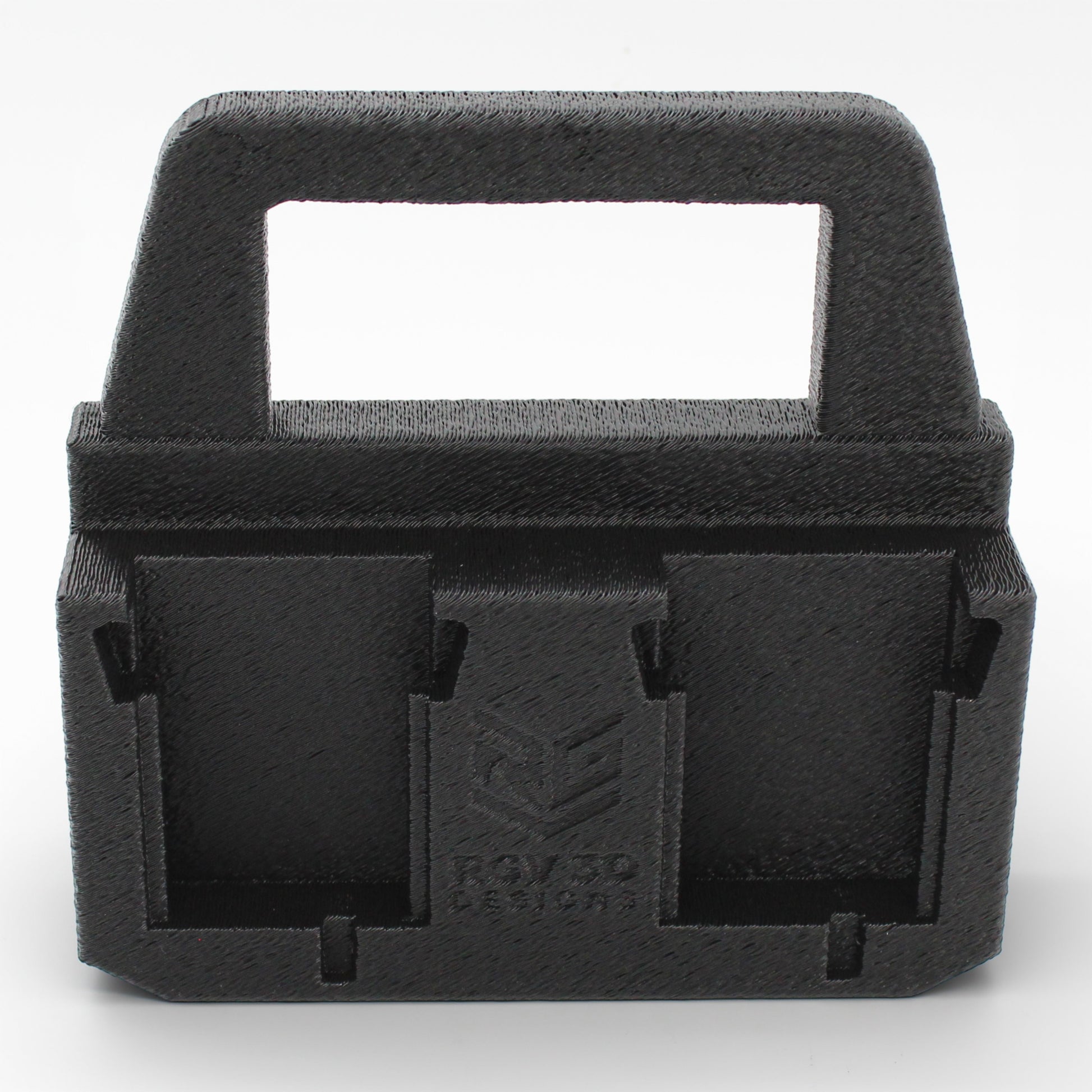 This caddy is designed to securely hold and organize your batteries while making them easy to carry to the jobsite, garage, tool trailer, or workshop.