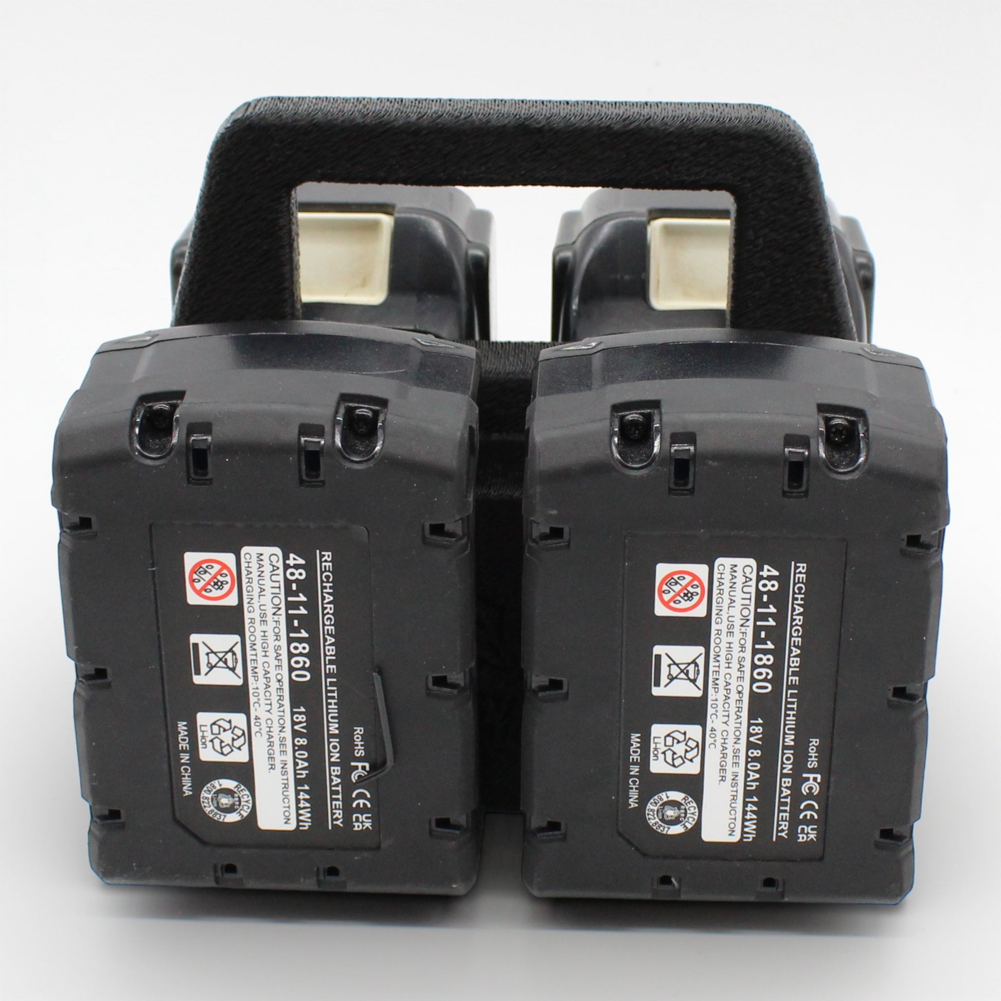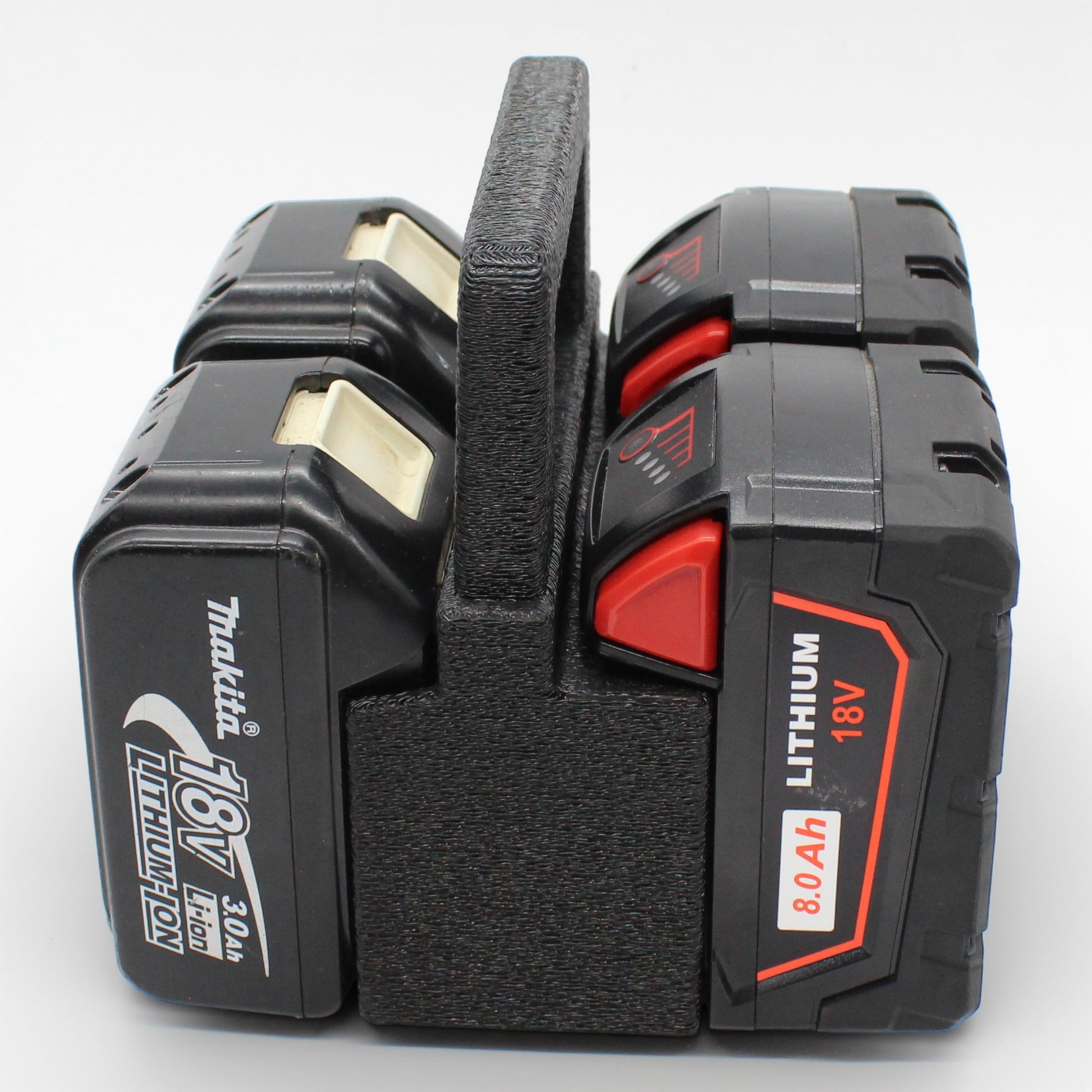 Holds 2 Milwaukee batteries and 2 Makita batteries